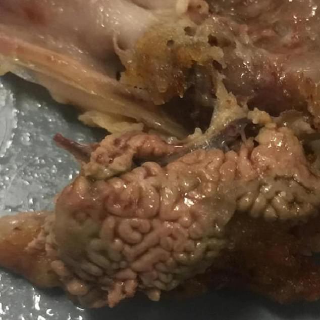26 жастағы аустралиялық әйел тез тамақтану мейрамханасында тауыққа тапсырыс берген. Олардың бірін жеп бітерде ішінен ми қатпарларына ұқсас нәрсе тапқан.  Қыз болған оқиғаны Facebook әлеуметтік желісіндегі KFC парақшасында жазып қалдырады. Сондай-ақ жағымсыз нәрсенің суретін де жүктейді. Жазба лезде желі қолданушылары арасында қызу талқыға түсіп, 22 мыңнан астам адам пікір қалдырған.