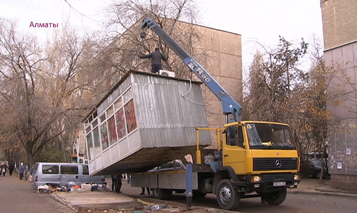 Алматының Әуезов ауданында заңсыз тұрған қос дүңгіршектің көзі жойылды. Нысандарды қожайындар өз еріктерімен сүрді.