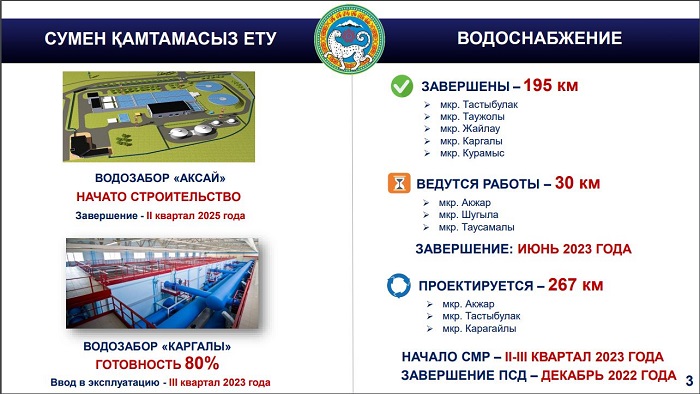 Сондай-ақ, су құбыры мен канализация желілерін жобалау және салу жұмыстары жүріп жатыр.