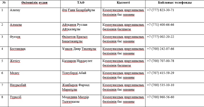 "Егер үйдің төбесінен сүңгі мұз байқасаңыз, қауіптің алдын алып, уақытылы тазарту үшін үйіңізге қызмет көрсететін басқару органына (МИБ, ПИК, ЖШС т.б.) хабарласуыңызды сұраймыз. Қауіпсіздік мақсатында үйдің шетіне, балконға және қардың еруі және сүңгі мұз құлауы мүмкін т.б. жерде тұрмаңыз, ескерту таспасымен қоршалған жерді айналып өту керек. Егер қызмет көрсетуші орган өтінішке құлақ аспаса, Алматы қаласының коммуналдық инфрақұрылымды дамыту басқармасының +7 (727) 225-14-31 нөміріне, сонымен қатар, төмендегі телефон нөмірлеріне қоңырау шалыңыз", - делінген хабарламада.