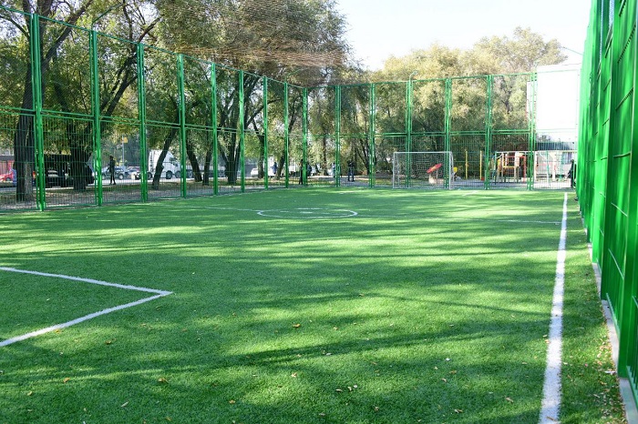 Баспасөз турына қатысушылар Түрксіб ауданы, Бекмаханов көшесі бойындағы Спасская көшесінің бұрышындағы балалар ойын алаңының ағымдағы жөндеу жұмыстарымен танысты. Оның жанында футбол алаңы бар. Алаң ойын жабдықтарымен, шағын сәулет формаларымен жабдықталған. Жарық тартылған, орындықтар мен урналар бар. Алаңдар 11 көп пәтерлі және 80-нен астам жеке тұрғын үйлерге жақын орналасқан.