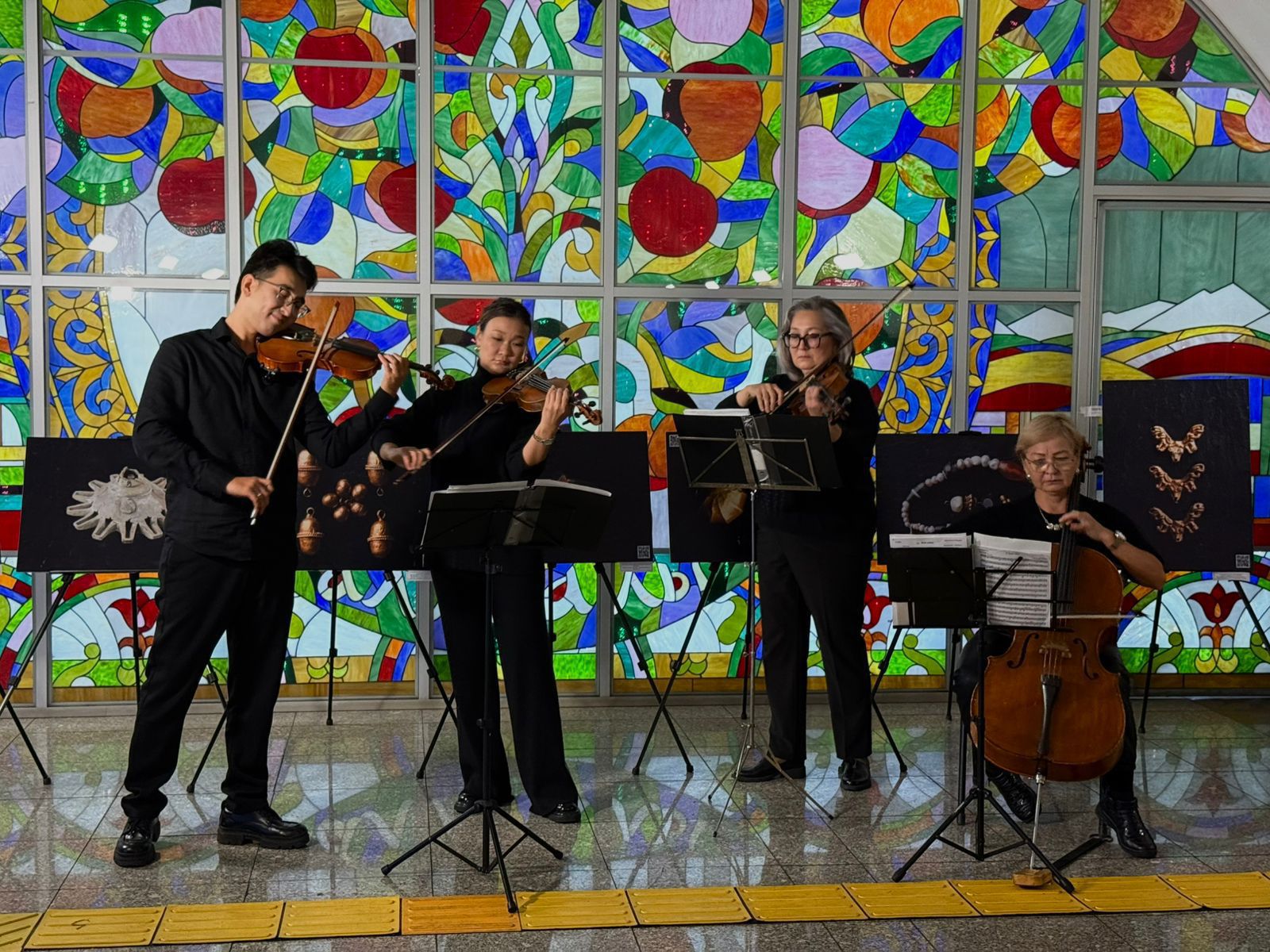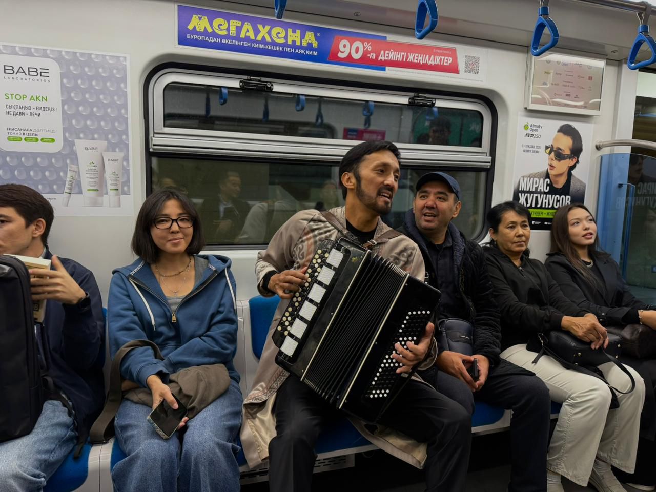 «Бауыржан Момышұлы» бекетінде дәстүрлі әншілер Саят Нұрғазин мен Дәурен Байбөрі домбырамен қазақ халық әндерін орындады. Ал «Байқоңыр» бекетінде вагон іші күтпеген жерден концертке айналды, Ерболат Төлеген мен Мақсат Базарбаев танымал композициялар орындап, жолаушыларды шынайы қуанышқа бөледі.