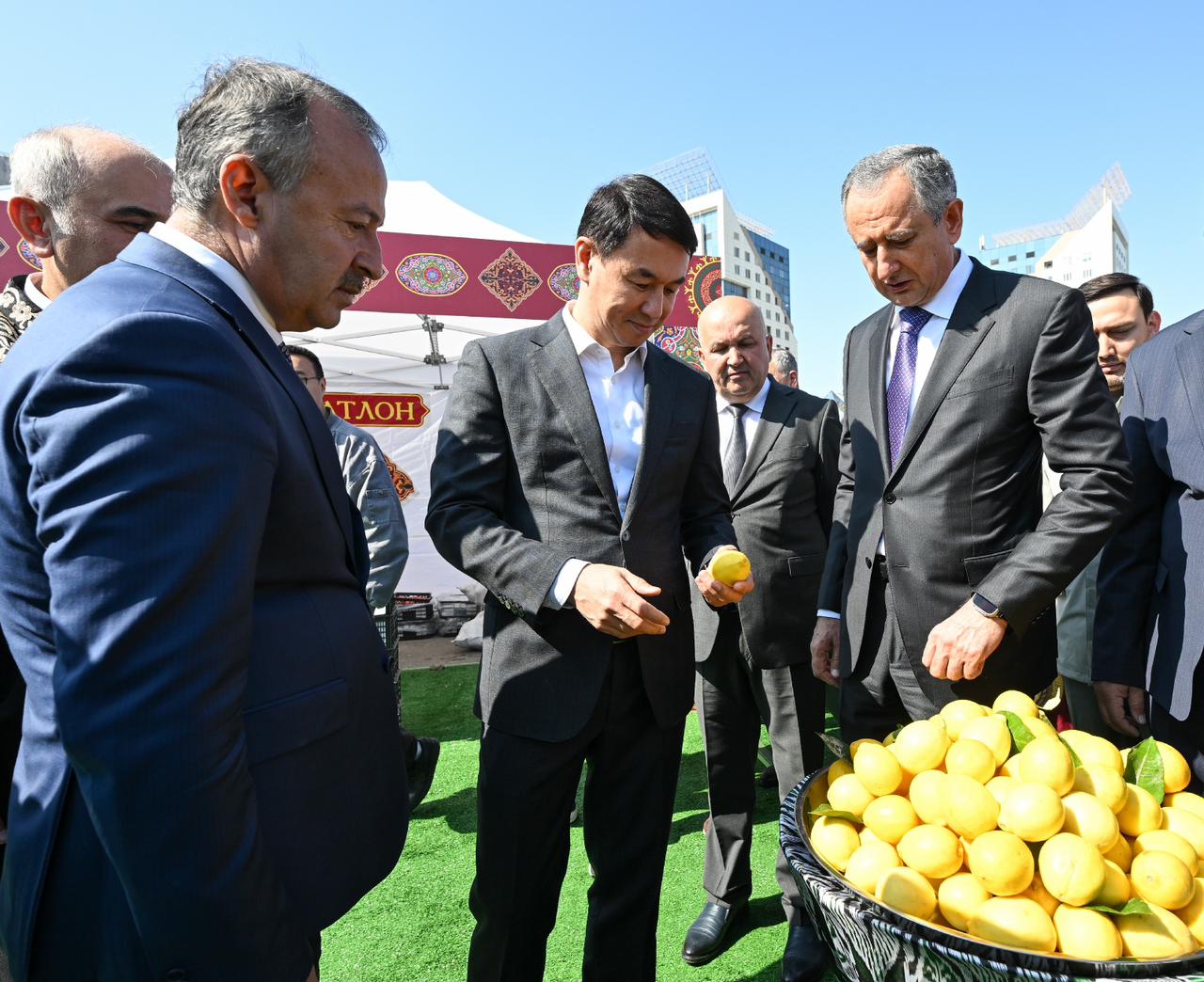 Алматы әкімі Дархан Сатыбалды жәрмеңкеде ұсынылған өнімдермен танысып, өндірушілер және келушілермен сөйлесті. Онымен бірге Хатлон облысының төрағасы Саид Давлатали де жәрмеңкеге қатысты. Бұған дейін олар ресми кездесу өткізіп, Алматы мен Хатлон облысы арасындағы ынтымақтастықтың болашағын, соның ішінде сауда-экономикалық байланыстарды дамыту мәселелерін талқылаған болатын.