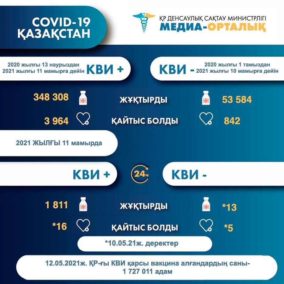 СМ ҚР-да коронавирус инфекциясына шалдыққандар туралы 2021 жылғы 12 мамырдағы ақпаратты жариялады, деп хабарлайды Almaty.tv тілшісі baq.kz-ке сілтеме жасап.
