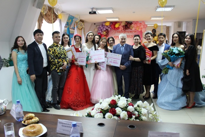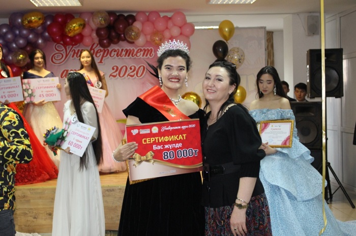 Жеңімпаздарды құттықтау рәсімінде Алматы университетінің ректоры Ермағанбетов Мүбарак Ермағанбетұлы "Университет аруы-2020" байқауына қатысушы қыздардың барлығына оқу ақысын төлеуге жеңілдік бере отырып, мақтау қағаздарымен, арнайы сертификаттармен марапаттады.