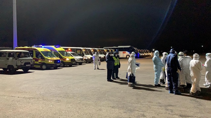 Карантин жарияланған жерден келген жолаушылар жұқпалы аурулар емханасының аумағындағы мамандандырылған бокстарға оқшауланады. Санитарлық және шекара қызметінің қызметкерлері, экипаж, медицина қызметкерлері ұшақты әуежай аумағындағы жеке аймаққа отырғызу кезінде, сондай-ақ пациенттерді жеке бағыт бойынша оқшаулау және карантиндеу процесінде коронавирусты инфекциялардың таралуына жол бермеу бойынша барлық эпидемияға қарсы шараларды сақтағанын атап өткен жөн. Ұшақ бортында жолаушылар термометрия әдісі бойынша үш кезеңнен тұратын тексеруден өтті.