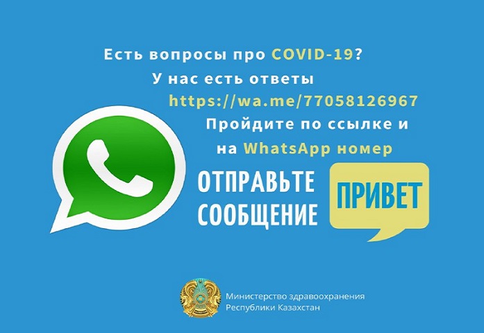 Денсаулық сақтау министрлігінің WhatsApp-тағы ресми арнасы арқылы ел тұрғындары аптасына 7 күн тәулігіне 24 сағат короновирус жайлы жиі қойылатын сұрақтарға жауап ала алады.