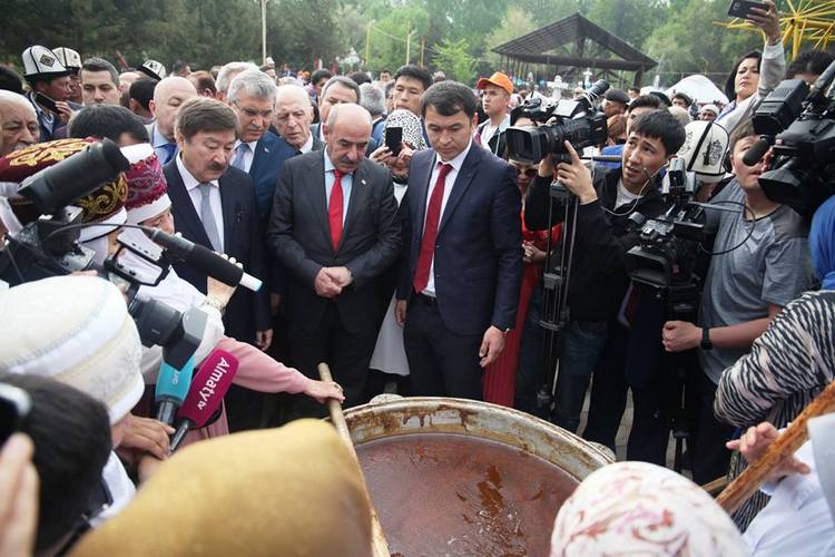 Түркі халықтарына ортақ мереке Ош қаласындағы Жастар саябағында өзгеше сән-салтанатпен басталды. Әжелер қазанда бір тәулік қайнаған қырғыз халқының ұлттық асы саналатын Сүмөлөктен ауыз тигізді.
