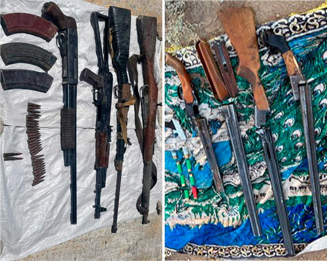 Қабылданған шаралар барысына 12 Калашников автоматы, 6 тапанша, 15 мылтық, 3 граната және 500 бірліктен астам оқ-дәрі алынды.