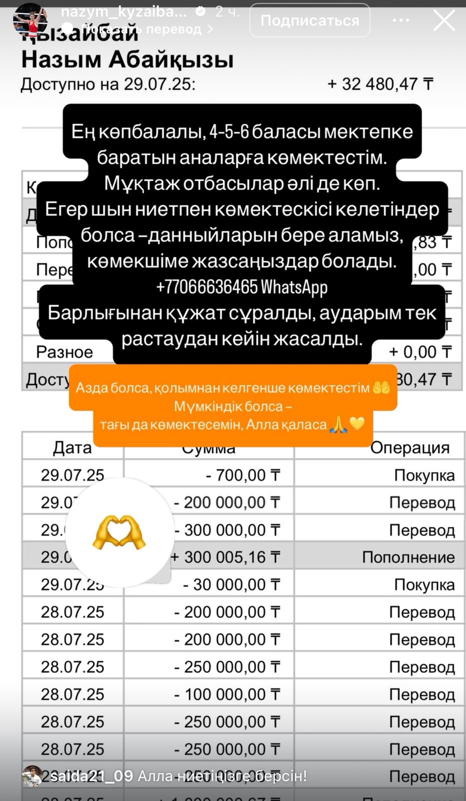 «Жаттығудан кейін өзіме тәнті болып келе жатырмын. Минус 2 миллион, 40 бақытты бала + күлімдеген көпбалалы ата-аналар. Жақсылық санмен емес, жүрекпен өлшенеді».