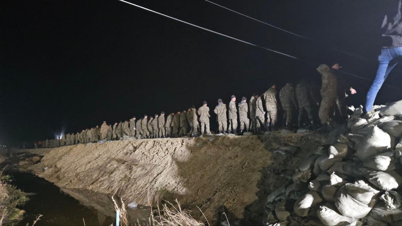 «Ұлттық ұлан академиясының 400 курсанты екі кезеңде жұмыс істеп жатыр. Олар қаптарды инертті материалдармен толтырып, бөгетті нығайтуда», - деп хабарлады ҰҰ академиясының баспасөз қызметі.