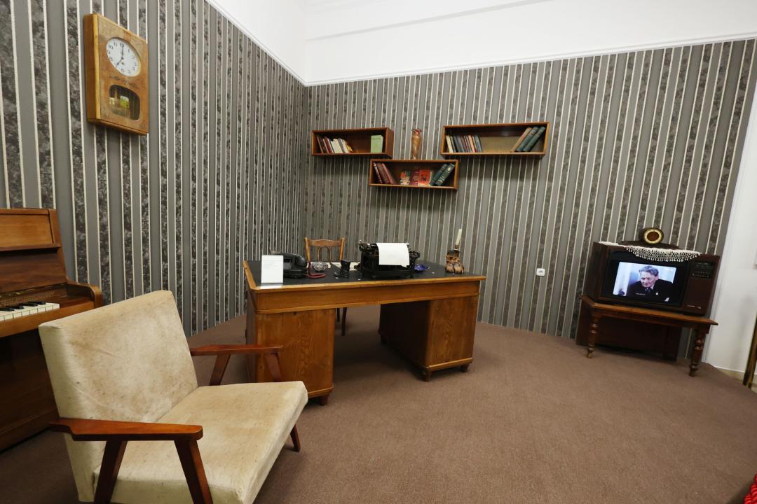 Түпнұсқада Тахауи Ахтанов пен Әбділда Тәжібаев секілді қазақ әдебиетінің көрнекті өкілдері отырған үстелі, батырдың соғыс жылдарынан бері қасында болған үстел шамы, компасы, сағаты мен фортепианосы да келушілердің ерекше қызығушылығын тудырды.