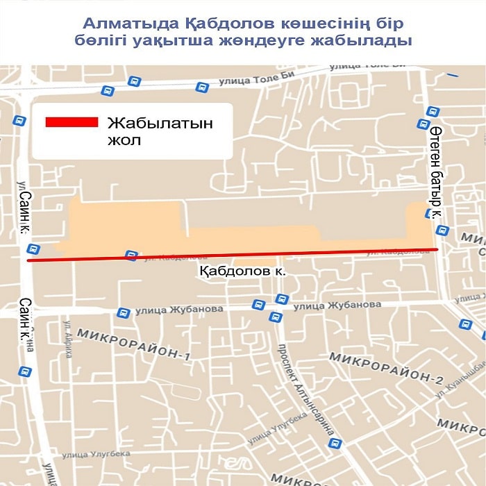 «14 қыркүйек сағат 23.00-ден 16 қыркүйек сағат 11.00-ге дейін Саин көшесінен Өтеген батыр көшесіне дейінгі аумақта қозғалыс жабылады. Бұл жерді Жұмабаев және Төле би көшелерімен айналып өтуге болады», - делінген хабарламада.