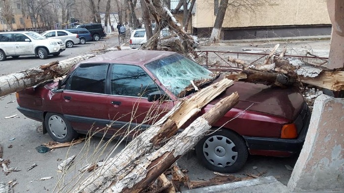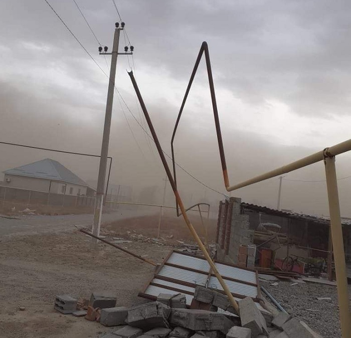 Түннен бері тараздықтар үрей құшағында отыр. Себебі жылдамдығы секундына 38 метрге жететін жел жолындағының бәрін жайпап тастаған. 16 мектеп пен 18 көпқабатты үй, 4 балабақшаның шатырын қиратқан. 12 аялдама бүлініп, кейбірі аударылып жатыр. Көліктерді ағаш басып, желілер үзілген. Қауіпті жағдайға байланысты қалада мектептер жұмысы тоқтатылып, онлайнға көшкен.