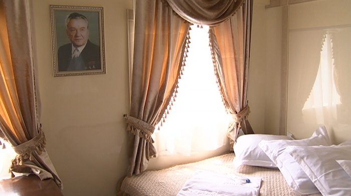 Бұл поезда аса көрнекті мемлекет және қоғам қайраткері Дінмұхамед Қонаевтың қызметтік вагоны да бар. Оны мұражай деп айтуға болады. Онда ұлтымыздың біртуар перзенті пайдаланған жиһазы да сақталған. Бөлме төріне портреті ілініп қойылған. Қонақжай бөлмеде қолданған телефоны тұр. Мұнда жолаушы үшін барлық жағдай жасалған. Оны тағы да дөңгелекті қонақ үй деп те атайды. Барлығы атауына сай. Яғни қонақжай, асхана және жуынатын бөлмесі бар.
