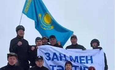 Флаг "Закон и порядок" подняли на высоте в Алматинской области