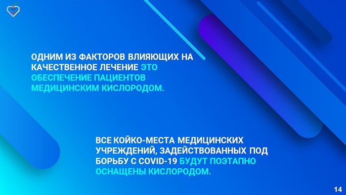 Один из факторов, влияющих на качественное лечение, — это обеспечение пациентов медицинским кислородом. В этой связи для системного решения данного вопроса принята городская программа по установке кислородных станций в медицинских организациях. Так, будет оснащено кислородом на 100% койко-места первого эшелона.