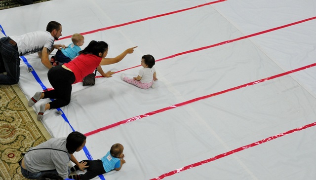 - Этот возраст – то время, когда малыши ползают активно. Здесь главное – завлечь, дальше все зависит от ребенка – кто-то быстро ползет, кто-то медленно, а кто-то отвлекается. Есть очень внимательные малыши: если смотрят на маму, то только к ней и ползут, - говорит руководитель отдела Центра развития молодежных инициатив Асия Мукашева.