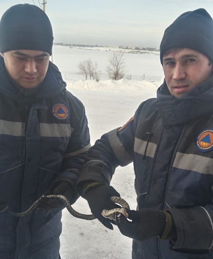 Увидев незваного гостя в центре зала, карагандинка позвонила местным спасателям. Пока те ехали на место вызова, змея исследовала квартиру. Прибывшие спасатели нашли ее на кухне.
