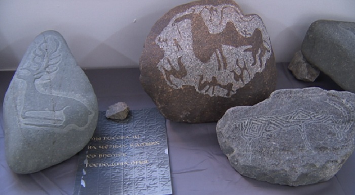 «Идея пришла, когда я выбил тамгу нашего рода и когда я её выбивал, закончил её, понял, что это очень интересный процесс с камнем, выбивать свой родовой знак. И после этого я начал очень внимательно относиться к изображениям. Начал тамга изучать. Наших родов и изображения тюркских, тюркские изображения, сакские, петроглифы древние», - сказал автор экспозиции «Номадическое сердце» Санжар Жубанов.
