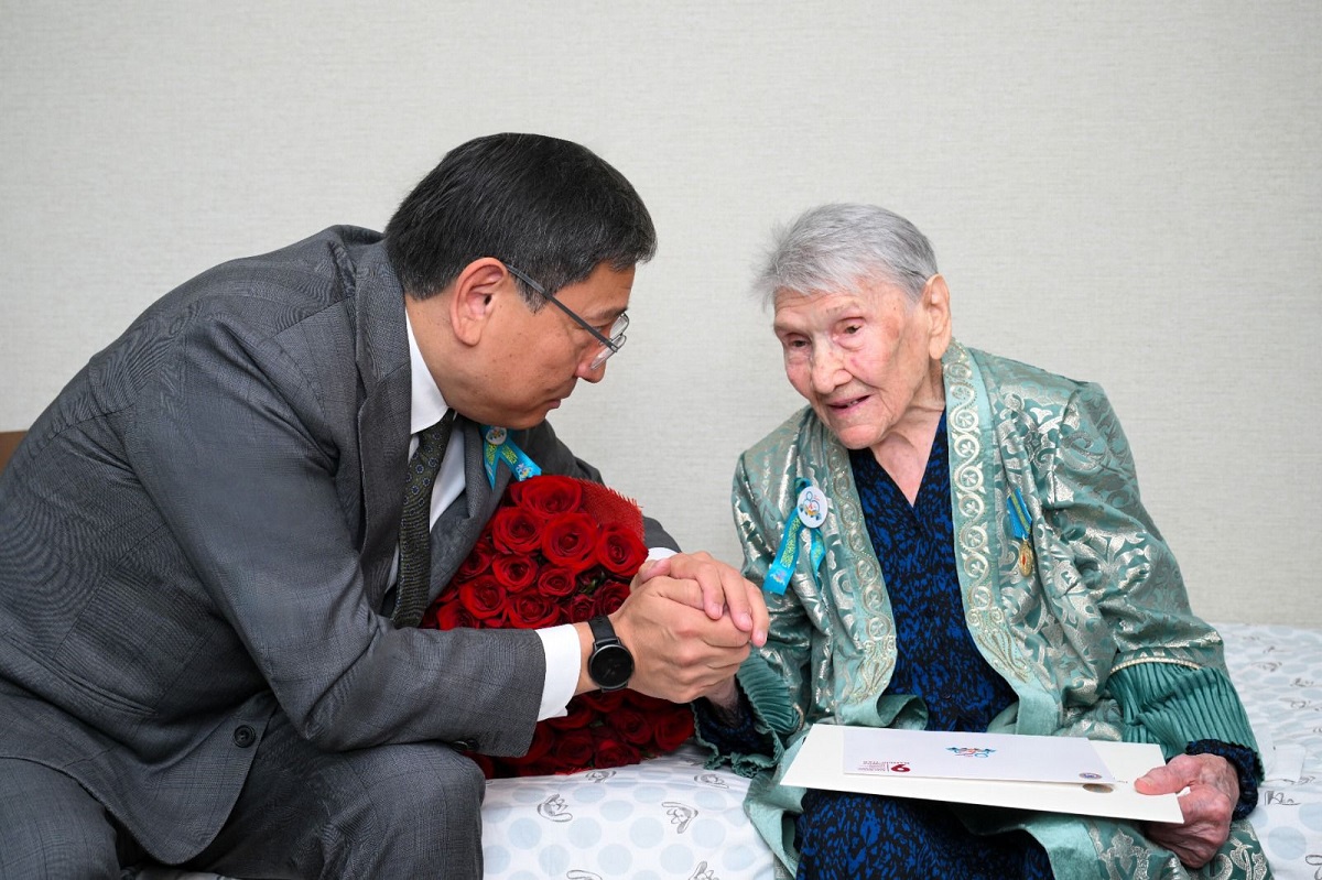 Ерболат Досаев выразил глубокое уважение и поблагодарил Екатерину Александровну за ее самоотверженный труд в годы войны.