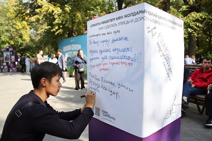 Особый интерес вызвали тематические доски для высказываний. На одной из них участники продолжали фразу: «Я горжусь тем, что в Алматы есть…».