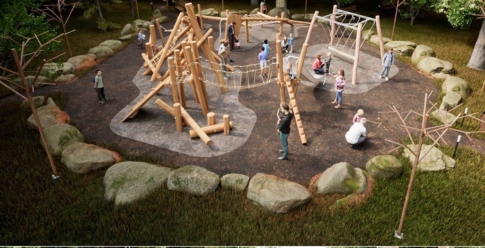 Роща зонирована в соответствии с её природной структурой и потребностями жителей. Внешняя зона предназначена для удовлетворения потребностей местного населения в активном природном досуге. Здесь появятся воркаут- и паркур-площадки, памп-трек, беговая дорожка, зона настольного тенниса, площадка для выгула собак, а также трасса для экстрим-байкинга, использующая рельеф западной части рощи. Средняя зона отведена под рекреационное и познавательное пространство, исключающее шумный досуг. Это территория для тихого отдыха на природе, наблюдения за птицами и животными, знакомства с растительным миром. Здесь разместятся инфоборды и интерактивные экостенды, пейзажные качели, эко-беседки для активных занятий участников центра активного долголетия, а также экотропы и баки для отходов. Эта зона позволит посетителям не только отдыхать, но и познавать природу, формируя экологическую культуру. Центральная часть рощи сохраняется как природное ядро, где вмешательство человека сведено к минимуму. Густые деревья, естественный рельеф и близость к воде создают атмосферу уединения и покоя.