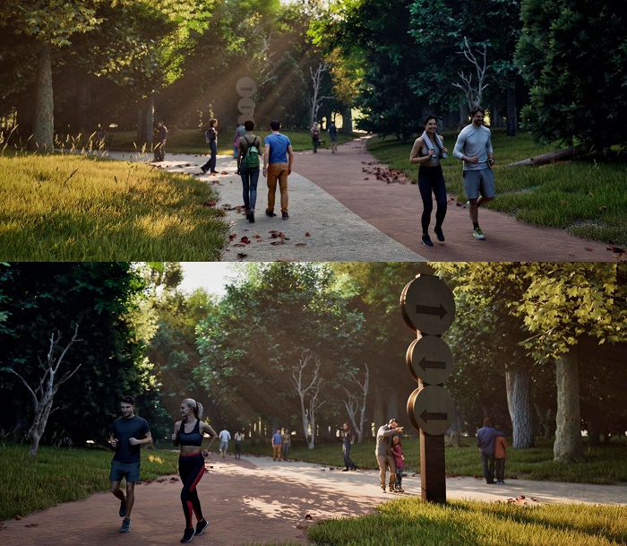 Для повышения безопасности и комфорта предусмотрено новое освещение. В активных зонах установят опоры высотой до 4,5 метра, а в эко-зонах — низкие светильники высотой до 1 метра, создающих мягкое свечение и не нарушающих экосистему. Чтобы стимулировать экологическую культуру посетителей и населения в целом, на всех входах будут установлены баки для раздельного сбора мусора с наглядными инструкциями. Их расположение выбрано так, чтобы было удобно обслуживать и вывозить отходы. На территории также появятся современные скамейки, экоурны и инфоборды с навигацией.