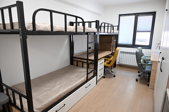 Главное отличие нового здания в том, что это общежитие комфорт-класса. Каждая комната оснащена отдельной кухней, санузлом и рабочей зоной, что делает проживание максимально удобным и приближенным к формату апартаментов. В здании также предусмотрены коворкинг-пространства для совместной учебы и проектной работы. Общежитие интегрировано в систему «умного кампуса», которая обеспечивает централизованное управление безопасностью и доступом. Общая площадь здания составляет 3 822,4 кв. м, объем инвестиций превысил 15 млрд тенге.