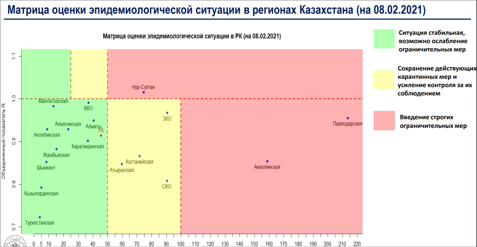 Согласно матрице оценки эпидситуации на 8 февраля в «красной» зоне по коронавирусу находятся Нур-Султан, Акмолинская и Павлодарская области, передает Almaty.tv.