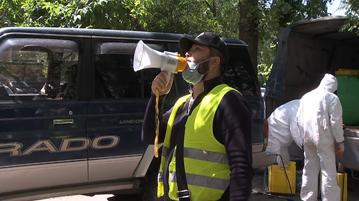 Работники спецбригад оповещают горожан перед каждой дезинфекцией.