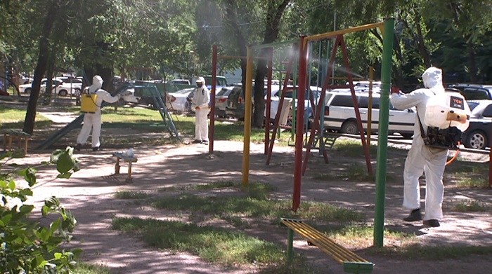 "По Алмалинскому району всего 1 395 домов. Ежедневно мы обрабатываем более 400 подъездов, более 960 этажей и более 35 детских площадок", - сообщил руководитель 6-й спецбригады по Алмалинскому району Мади Ражан.