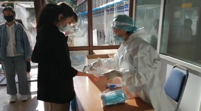 Экзаменуемые обязаны быть в масках. Во время сдачи тестирования между участниками соблюдается дистанция в два метра, а при входе выпускники проходят пять этапов проверки: