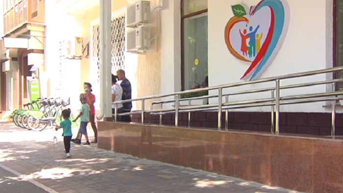 Центр поддержки семьи «Бақытты отбасы» находится в Алматы на Зенкова-Гоголя, передает корреспондент Almaty.tv. На входе есть пандус с поручнями для людей с ограниченными возможностями. В самом здании – множество комнат, в том числе, где мамы могут оставить ребенка, пока занимаются обучением или посещают кабинет врача или юриста.