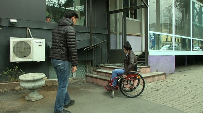 Обменный пункт, магазин, аптека и общественный транспорт - такой маршрут построила себе председатель ассоциации женщин с инвалидностью «Шырак» Мария Тарасова, вынужденная передвигаться в инвалидной коляске. Но уже в начале пути ее ждала преграда: мини-маркет есть, а пандуса или кнопки вызова - нет. Без посторонней помощи не обойтись.