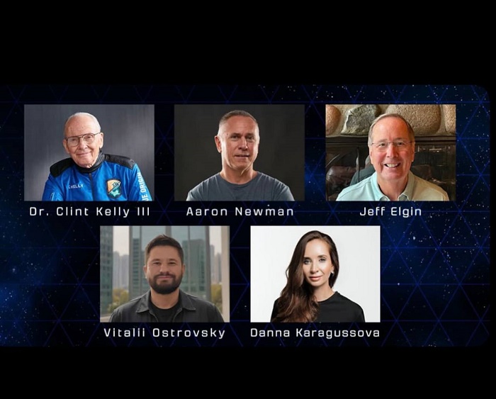 Вместе с Карагусовой на борту окажутся ещё пять участников — в их числе бизнесмены, инженеры и предприниматели из разных стран, а также один пассажир, пожелавший сохранить анонимность. Среди участников: Джефф Элгин, Клинт Келли III, Аарон Ньюман и Виталий Островский.