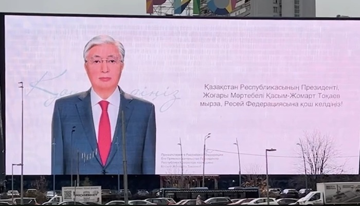 "Приветствуем в Российской Федерации Его Превосходительство Президента Республики Казахстан господина Касым-Жомарта Токаева", - так написано на больших билбордах в Москве.