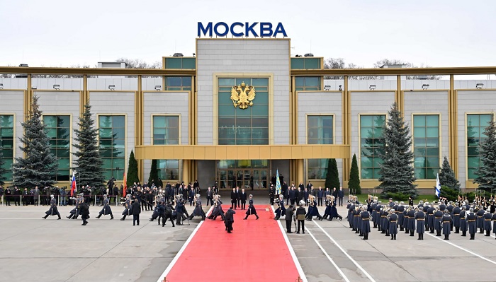 В аэропорту Внуково-2 в честь высокого гостя были выстроены рота почетного караула Московского гарнизона и военный духовой оркестр.