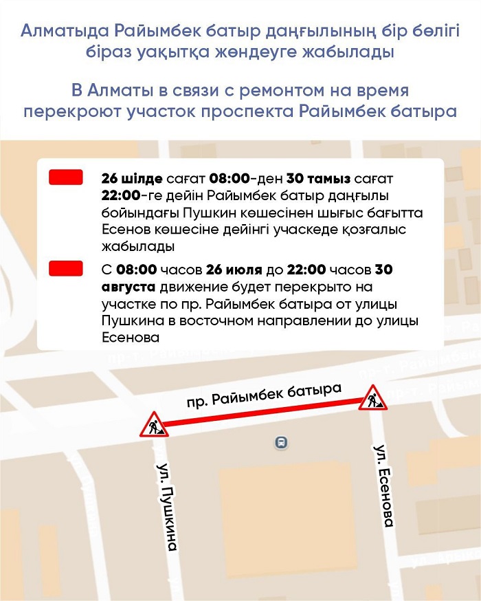 Читайте также: В Алматы временно ограничат проезд на участке улицы Лавренева
