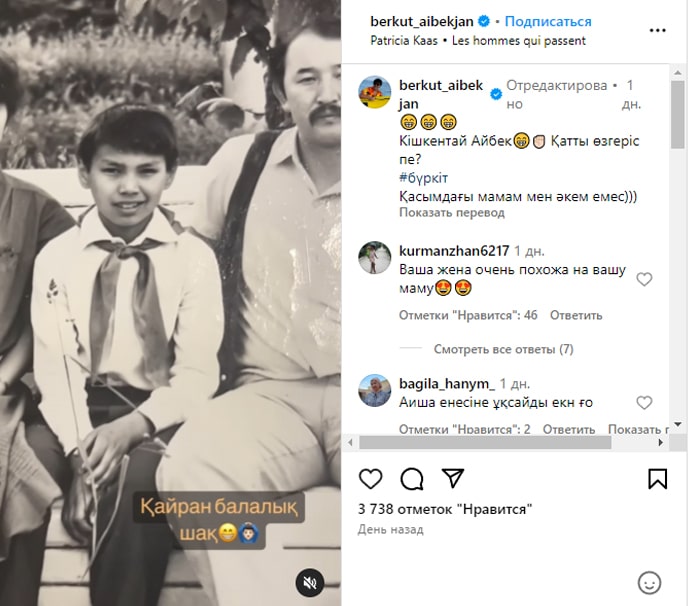 - Маленький Айбек. Сильно изменился? Рядом со мной не мои мама и папа, - подписал Беркут подборку фото из семейного альбома.
