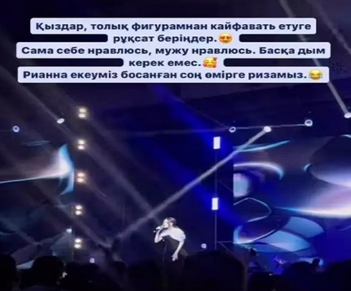 - Девочки, разрешите мне покайфовать от своей располневшей фигуры. Сама себе нравлюсь, мужу нравлюсь. Больше ничего не нужно. Мы с Рианной после родов довольны жизнью", - заявила Ерке.