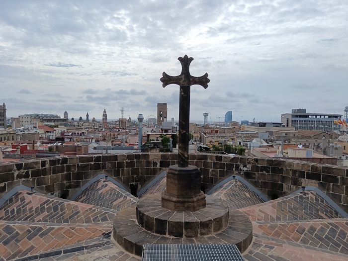 Кстати, у храма есть не только подземелье, но и смотровая площадка на крыше. Ее можно посетить, воспользовавшись лифтом, и окинуть взглядом Старый город Барселоны с высоты птичьего полета.