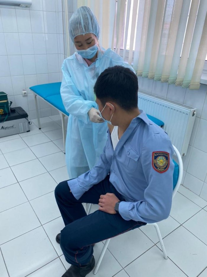 «Именно поэтому, в целях обеспечения санитарно-эпидемиологического благополучия и сохранения здоровья, проводится иммунизация личного состава органов внутренних дел, задействованного в охране общественного порядка и принимающего активное участие в подготовке и проведении всех общественных, спортивных и других массовых мероприятий. На сегодняшний день в Департаменте полиции Алматинской области вакцинировано 65,8 % всего личного состава. Одними из первыми на своем примере лечебную вакцину получили первые руководители Департамента и служб и подразделений. Вакцинация – это не только право, но и коллективная обязанность, обеспечивающая общую безопасность! Все необходимые средства и медикаменты для проведения медицинской процедуры имеются в полном объеме, желающих получить вакцину сотрудников так же предостаточно, поэтому работа в данном направлении продолжается», - отметил начальник Управления кадровой политики ДП Алматинской области подполковник полиции Талант Жумабек.
